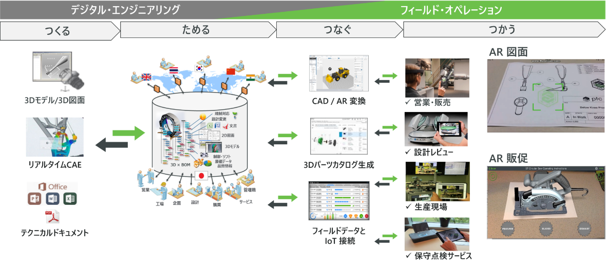 更に、PLMで蓄積したデータをARやIoT等に活用することも可能です。