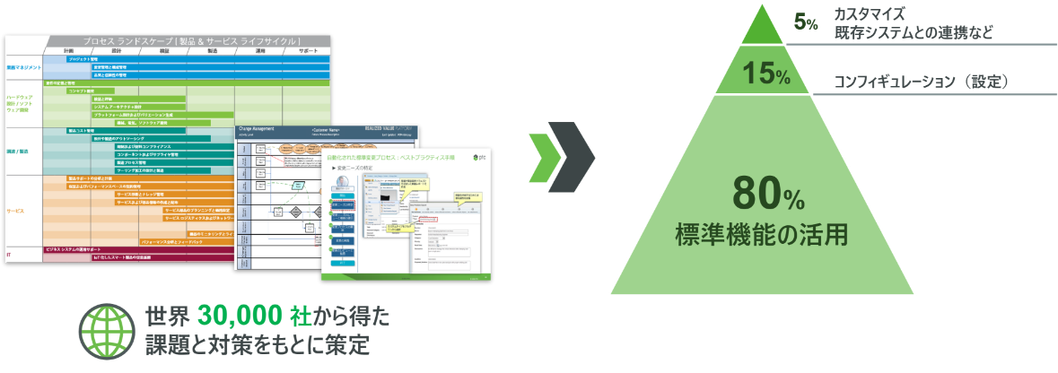 また、OOTBで導入可能な標準機能を豊富に搭載しているグローバル対応に対応したPLMです。