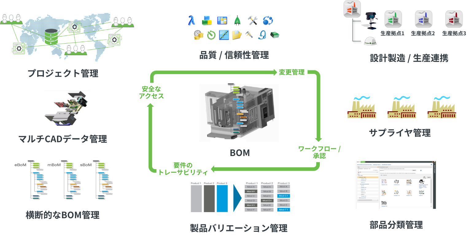 - 会社全体で関係者全員の製品情報管理